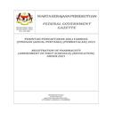 2021 年 12 月 28 日 2021 年 12 月 28 日(A) 486 联邦政府宪报药剂师注册令(第一附表的修正)(撤销)2021 药剂师注册(第一附表的修正)(撤销)2021 年总令的法令。 (A) 486 药剂师注册法 1951 药剂师注册(第一附表的修订)(撤销)令 2021 年行使 1951 年药剂师注册法第 371 号法第 6 (3) 款赋予的权力,部长在咨询后与委员会一起,根据姓名和开始 1 作出命令。 (1) 本命令可引称为 2021 年药剂师注册(附表一的修订)(撤销)令。 (2) 本命令于 2021 年 12 月 31 日生效。撤销 2. 2018 年 PU 药剂师注册令(第一附表修正案) (A) 1822018 被废除。制作于 2021 年 12 月 23 日 KKM.60018294 Vol.1 (2); PN (PU2) 200V KHAIRY JAMALUDDIN ABU BAKAR 卫生部长 2 P.U. (A) 486 药剂师注册法 1951 药剂师注册(第一附表的修正)(撤销)命令 2021 授予第 6 (3) 款第 6 (3) 小节权力,由部长在行使 1951 年药剂师注册法第 371 法时,在咨询后董事会,作出以下命令 引证和开始撤销 1。...