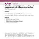 帮助台报告 现金转移计划对发育迟缓和金融包容性的影响 劳拉·博尔顿发展研究所 2019 年 2 月 26 日 问题 社会现金转移计划对儿童发育迟缓产生影响的证据是什么?哪些干预措施对推动这种影响很重要?第二个问题 有哪些证据表明通过与普惠金融相关的干预措施来加强接受社会现金转移的人们的减贫?内容 1. 总结 2. 现金转移和发育迟缓的背景 3. 对儿童发育迟缓有积极影响的计划 4. 母亲教育对发育迟缓的影响 5. 现金转移和发育迟缓研究的局限性 6. 现金转移和金融普惠 7. 参考 K4D帮助台服务提供当前研究、证据和经验教训的简要总结。帮助台报告不是严格或系统的审查;它们旨在介绍与研究问题相关的最重要证据。他们利用对已发表文献的快速案头审查和与学科专家的咨询。帮助台报告由英国国际发展部和其他政府部门委托编写,但所表达的观点和意见不一定反映 DFID、英国政府、K4D 或任何其他贡献组织的观点和意见。如需更多信息,请联系 helpdesk@k4d.info。 1. 摘要 现金转移和发育迟缓 本报告重点关注过去十年(自 2009 年以来)公布的证据。在以下计划中可以找到关于发育迟缓的积极证据 尼加拉瓜的饮食建议无条件转移。孟加拉国的现金加行为改变交流。在菲律宾的转移取决于免疫接种、体重监测、儿童疾病的诊所管理、驱虫和家庭发展课程。...